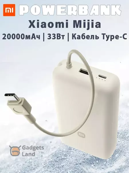 Портативный аккумулятор Xiaomi Mi Power Bank With Cable USB-C 20000mAh PB2030MI Beige купить в Серове